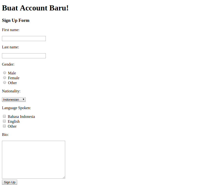 Buatlah file baru bernama form.html yang berisi form seperti berikut :