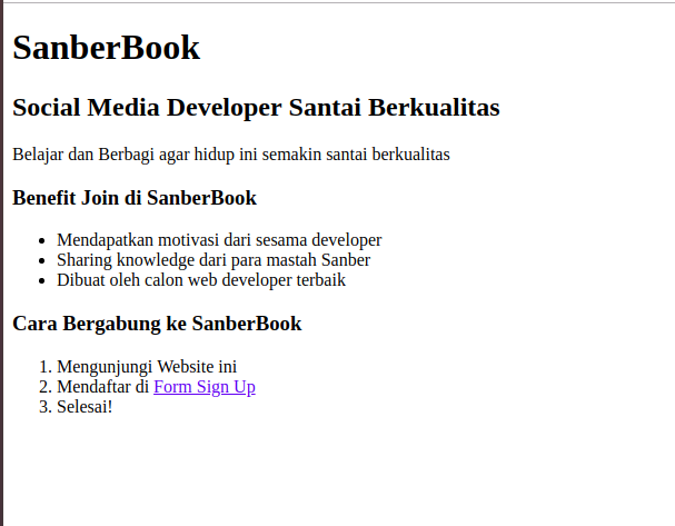 Buatlah sebuah file index.html yang akan menampilkan halaman seperti berikut: