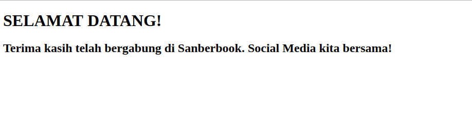 Setelah user berhasil mendaftar, berikan halaman welcome.html yang memberikan ucapan selamat datang seperti berikut: